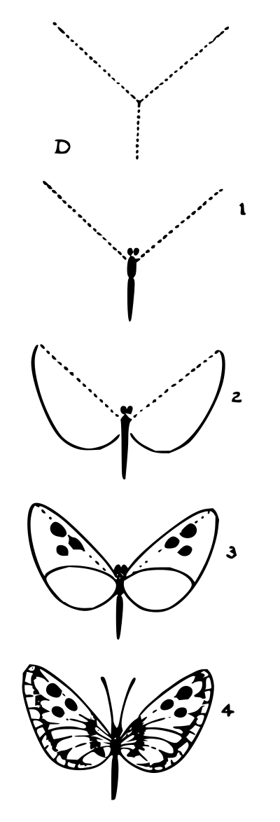 Image of a butterfly from E. G. Lutz book "Drawing made easy", © 1921, page 30. Available at https://archive.org/details/drawingmadeeasyh00lutz/page/30/mode/2up