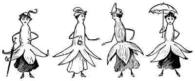 Image of fuchsia flower ladies from E. G. Lutz book "Drawing made easy", © 1921, page 37. Available at https://archive.org/details/drawingmadeeasyh00lutz/page/36/mode/2up