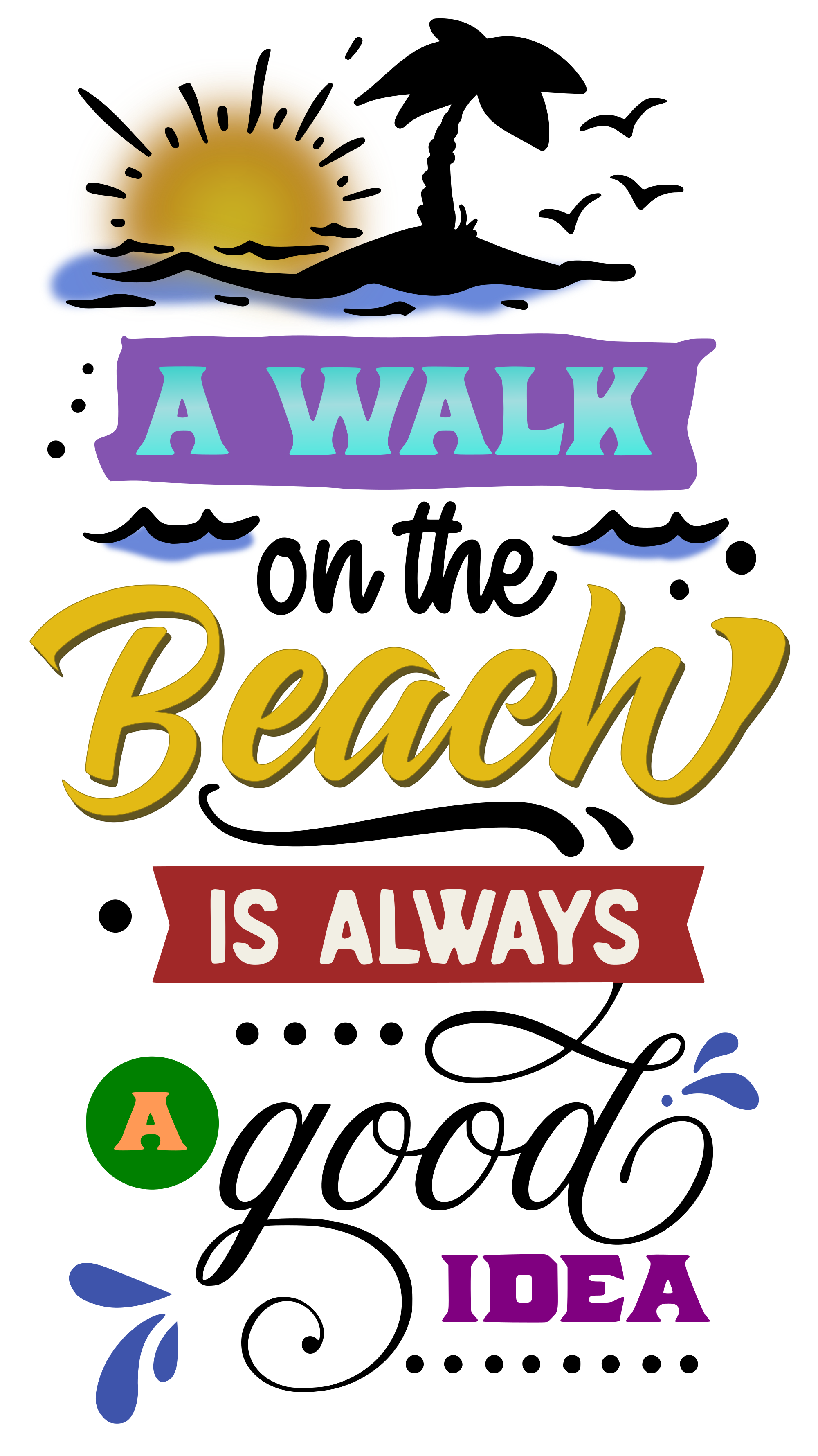 colour version of this poster that says "A walk on the beach is always a good idea"
