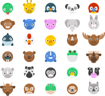 Pack of 30 different animal illustrations.