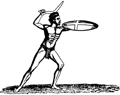 this Australian aborigine man has a boomerang and a shield