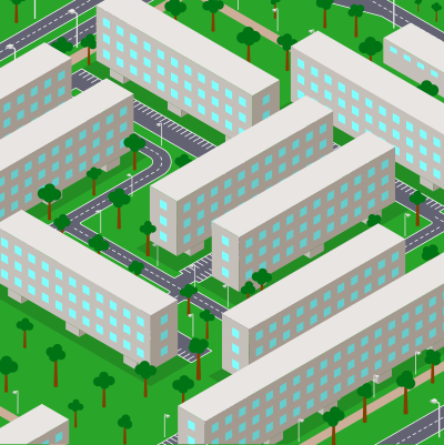 - city buildings streets block home residential isometric axonometric