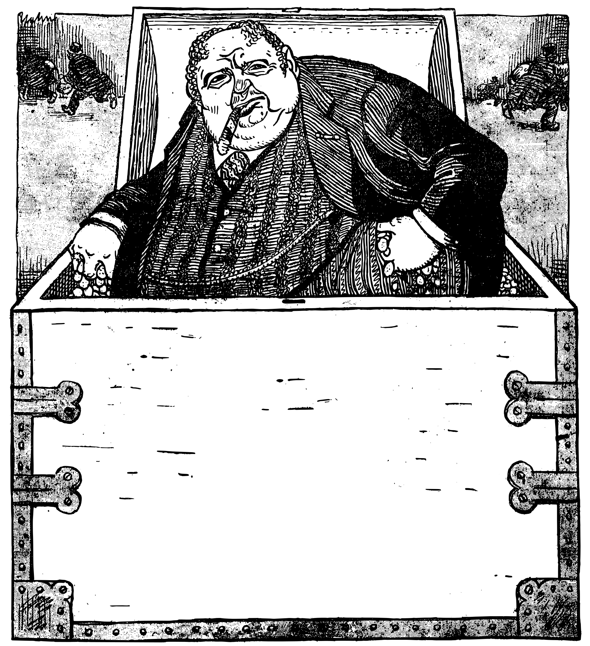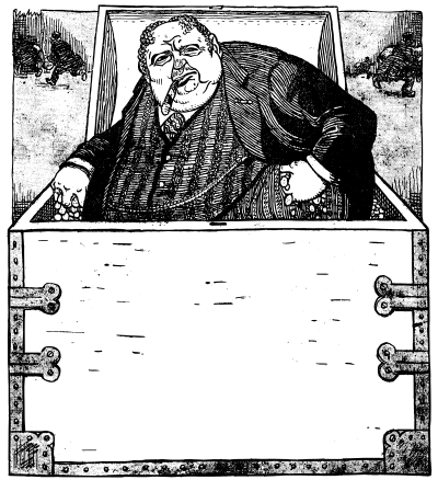 rich man in a box with gold coins