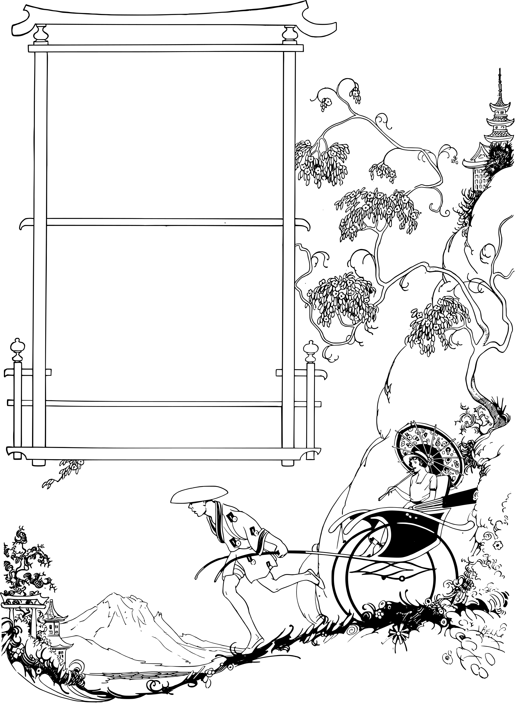 - Asia rickshaw stereotype frame template woman man Asian Japan China retro vintage 1924 fantastic+frames parasol umbrella pagaoda