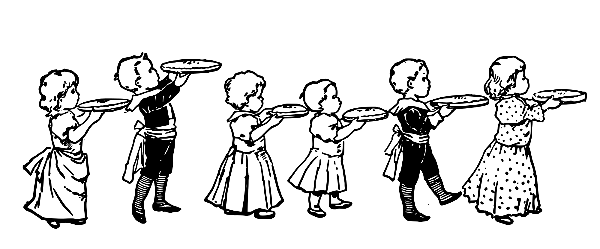 A row of kids holding pies