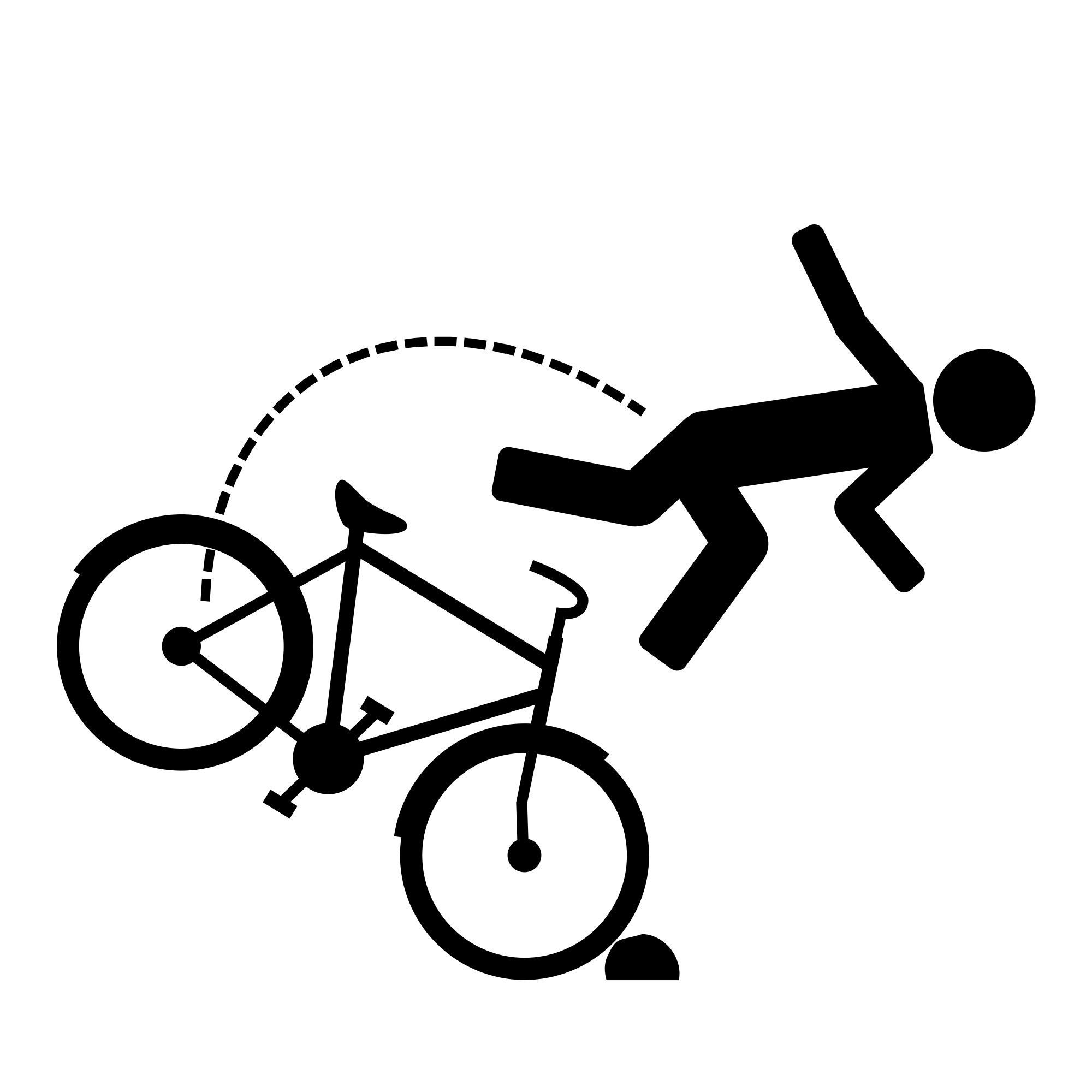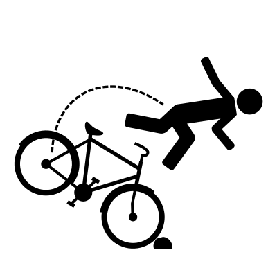 Bike crash after hitting a rock. Created by James Kuening for the noun project. https://thenounproject.com/icon/11183