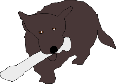 Dog with rawhide bone.