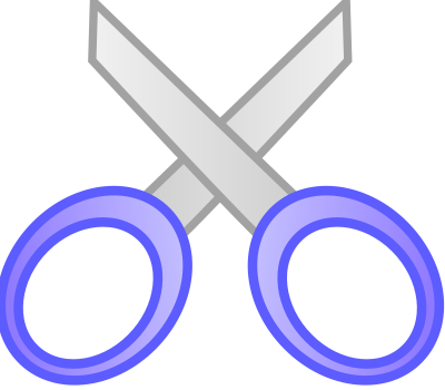 Cut blue scissors icon.