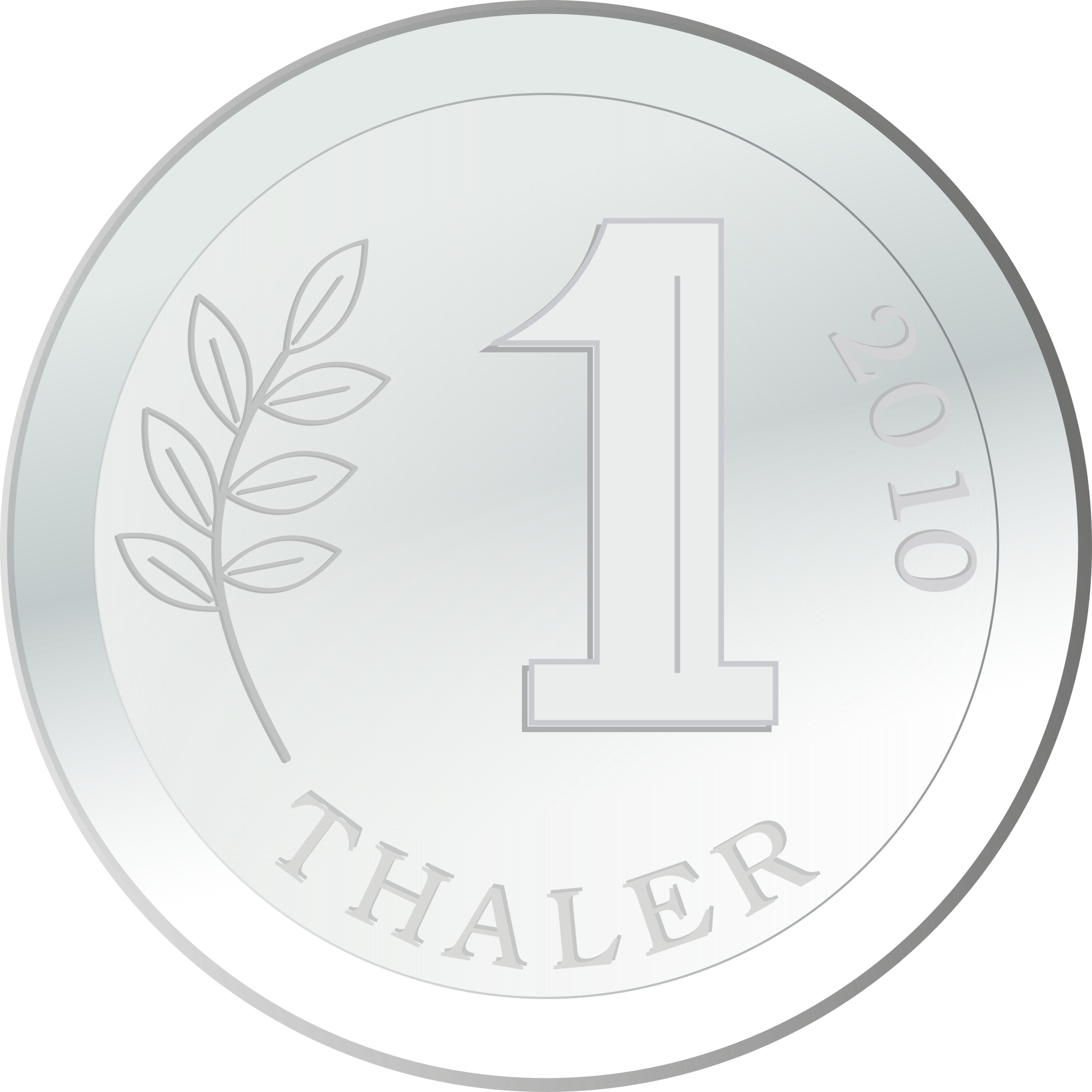 A single hypothetical silver coin (I mean, no one has Thalers anymore, right?), drawn in Inkscape.