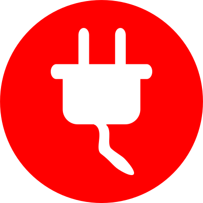 simple red circular icon with white simplified power cord