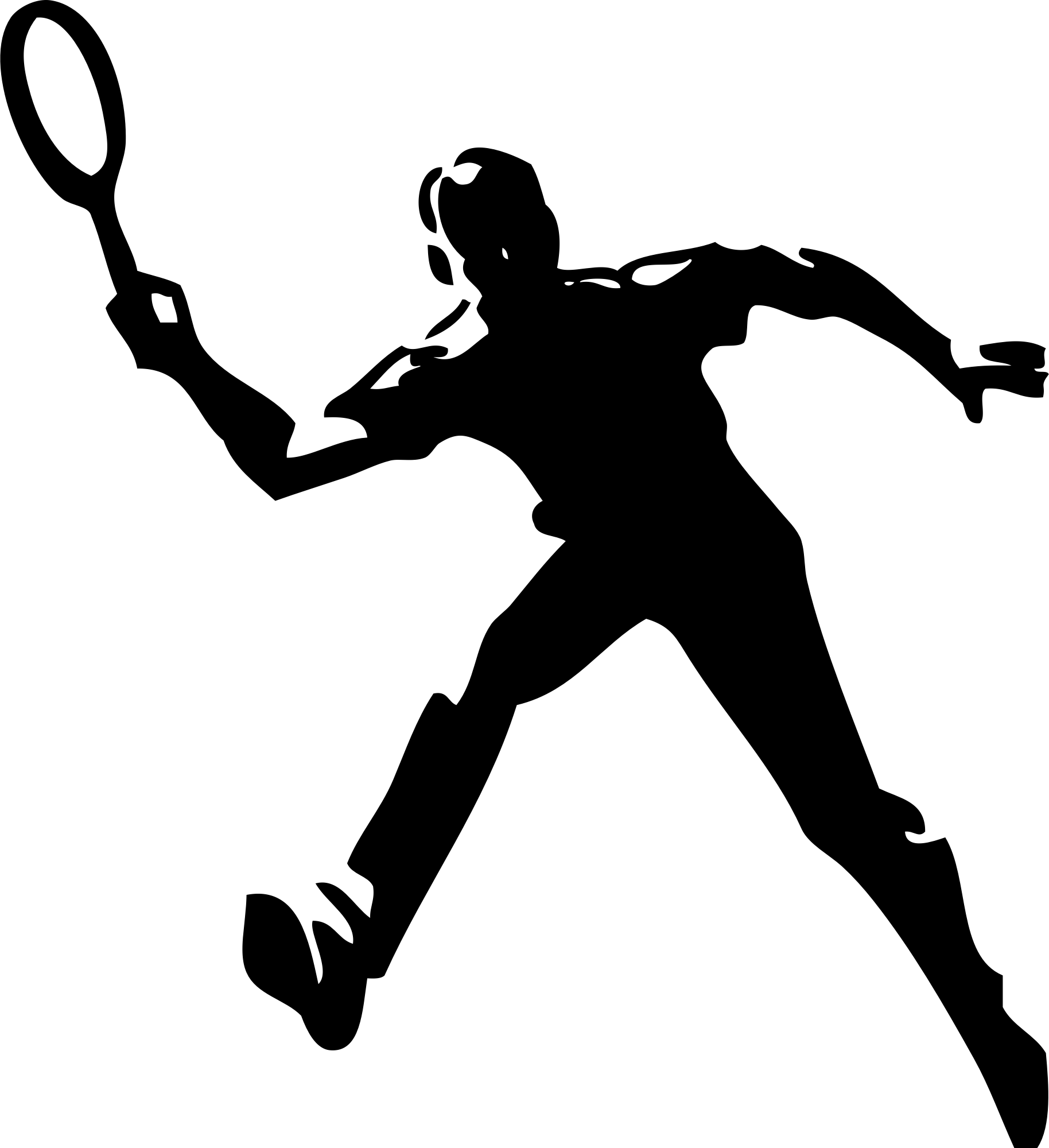 a simple black and white drawing of a tennis player