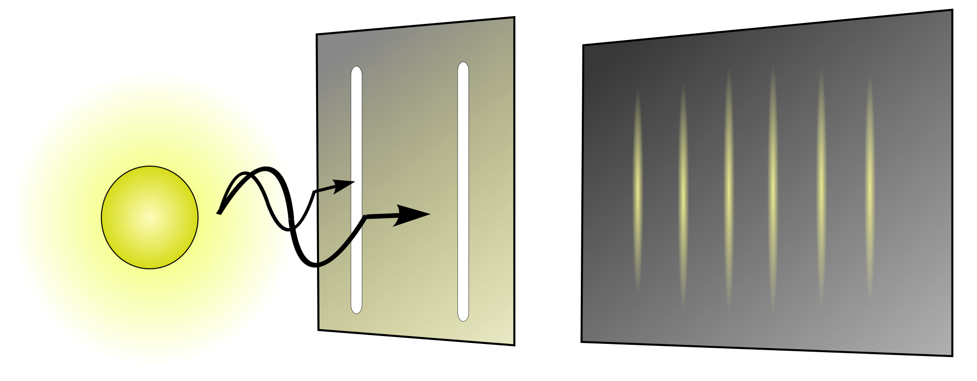 This is an illustration of the famous experiment on light-interference pattern, which shows the wavelike nature of light.
