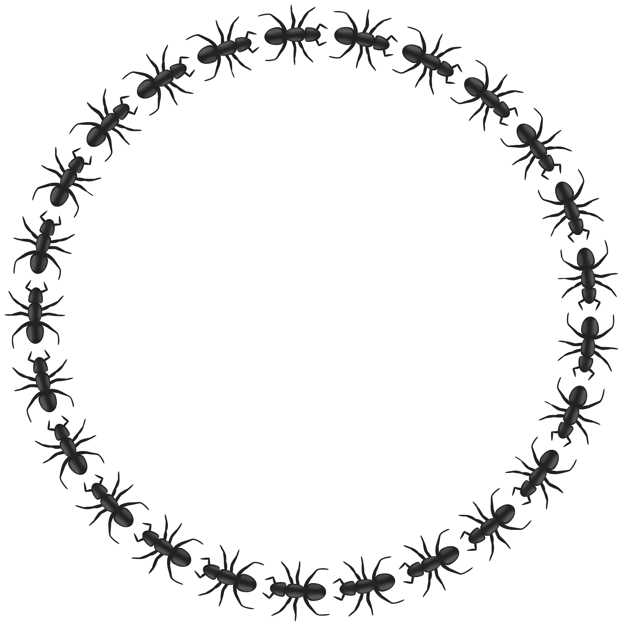 A circle border made of ants. (It is rather for text, not for images, as it has holes - they're not continuous). SVG file contains the smallest border element (single ant) just off the page.