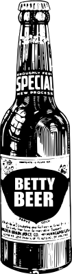 This is a black and white bottle of beer. The name "Betty Beer" is of course fictional. I tried to make the image so it would be easy for anyone to replace the title of the beer with anything they want (even a soda name or anything) but I figured it was good to go with no real business names on the bottle of course.