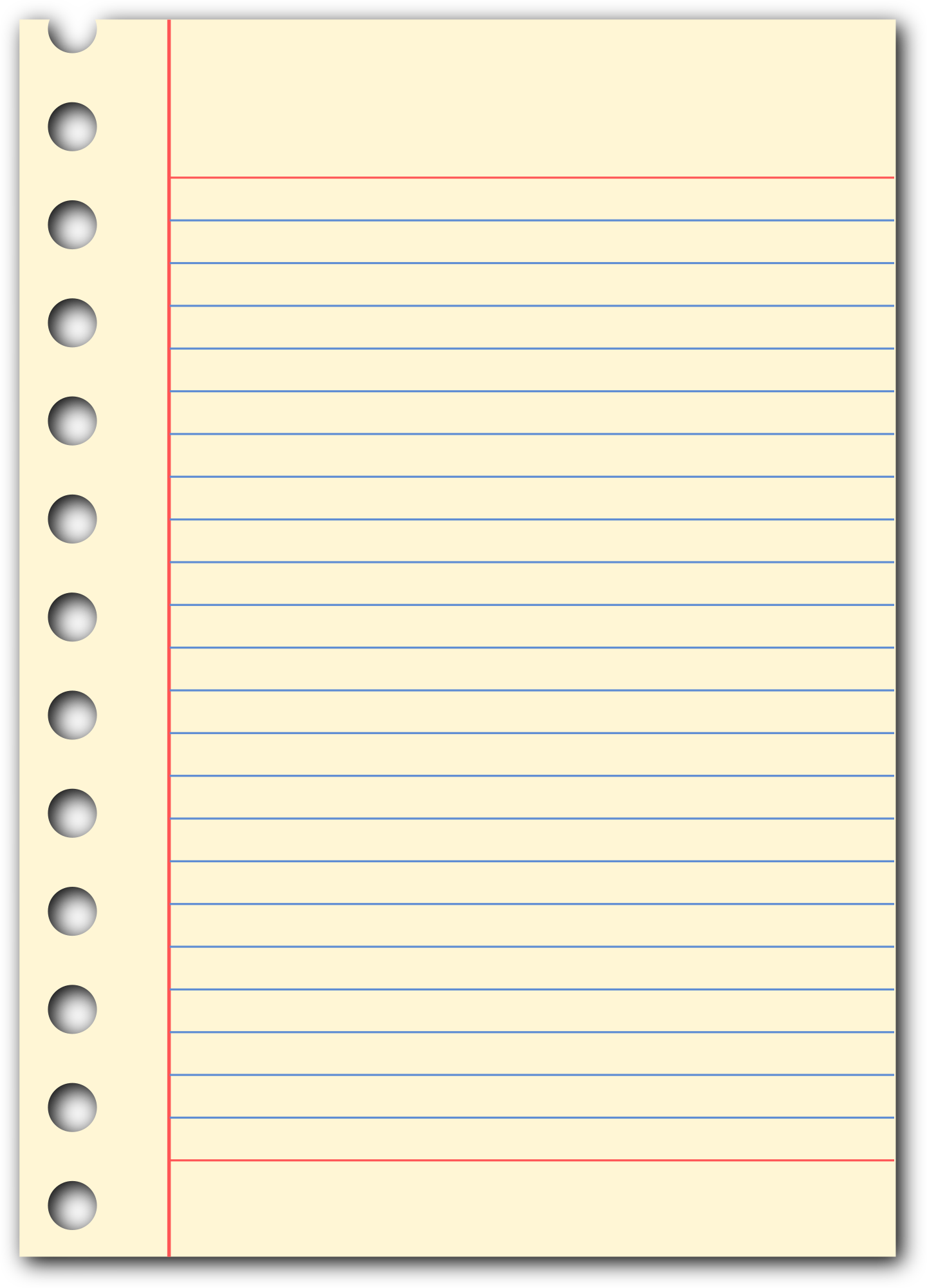 A notepade page with hole on the side.