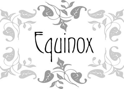 vectorised leaf motif fromoldbooks.org - turned and repeated to form a border. Equinox - in the middle - inked out with inkscapes simplify nodes tool. Download Original Vine leaf motif http://www.fromoldbooks.org/DelamotteOrnamentalAlphabets/pages/53-Monograms,Crosses-etc.-img10-vineleaves/ Have now removed the above link from the SVG and converted text to paths.