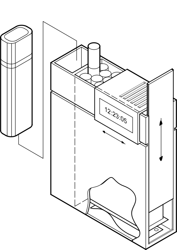 Technical drawing of a cigarette box.