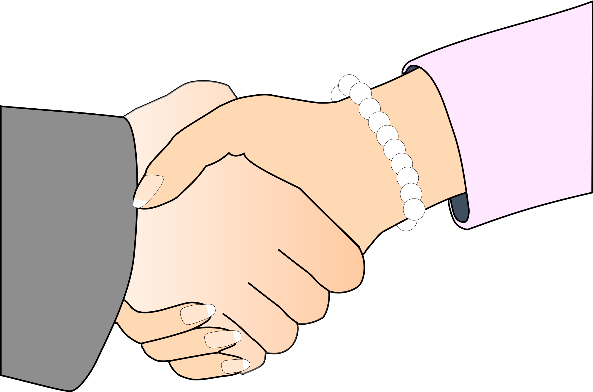 Handshake with black outline (white man and woman hands, freshwater pearl bracelet) - Poignée de main, prise de contact, serrement de main avec bord noir (main d'homme blanc et de femme avec bracelet de perles) - Händedruck, Handschlag, schwarz Umriss (weißen Mann und Frau Hände, Zuchtperlen Armband) - Stretta di mano, contatto con contorno / bordo nero (mani di uomo e donna bianchi con braccialetto di perle)