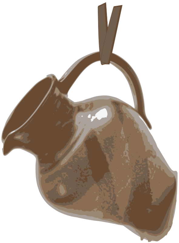 Ceramic Jug hanging from leather strand.