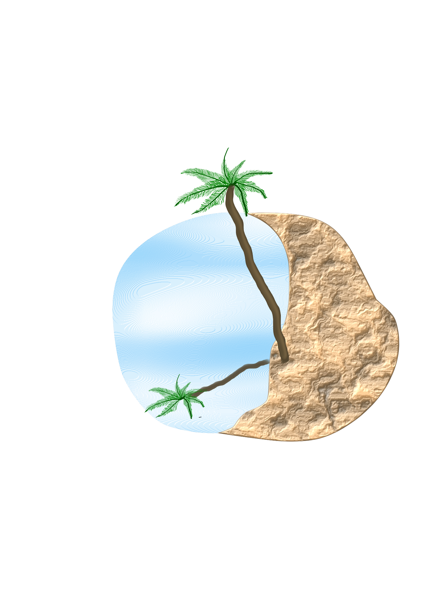 A palm tree on a beach.