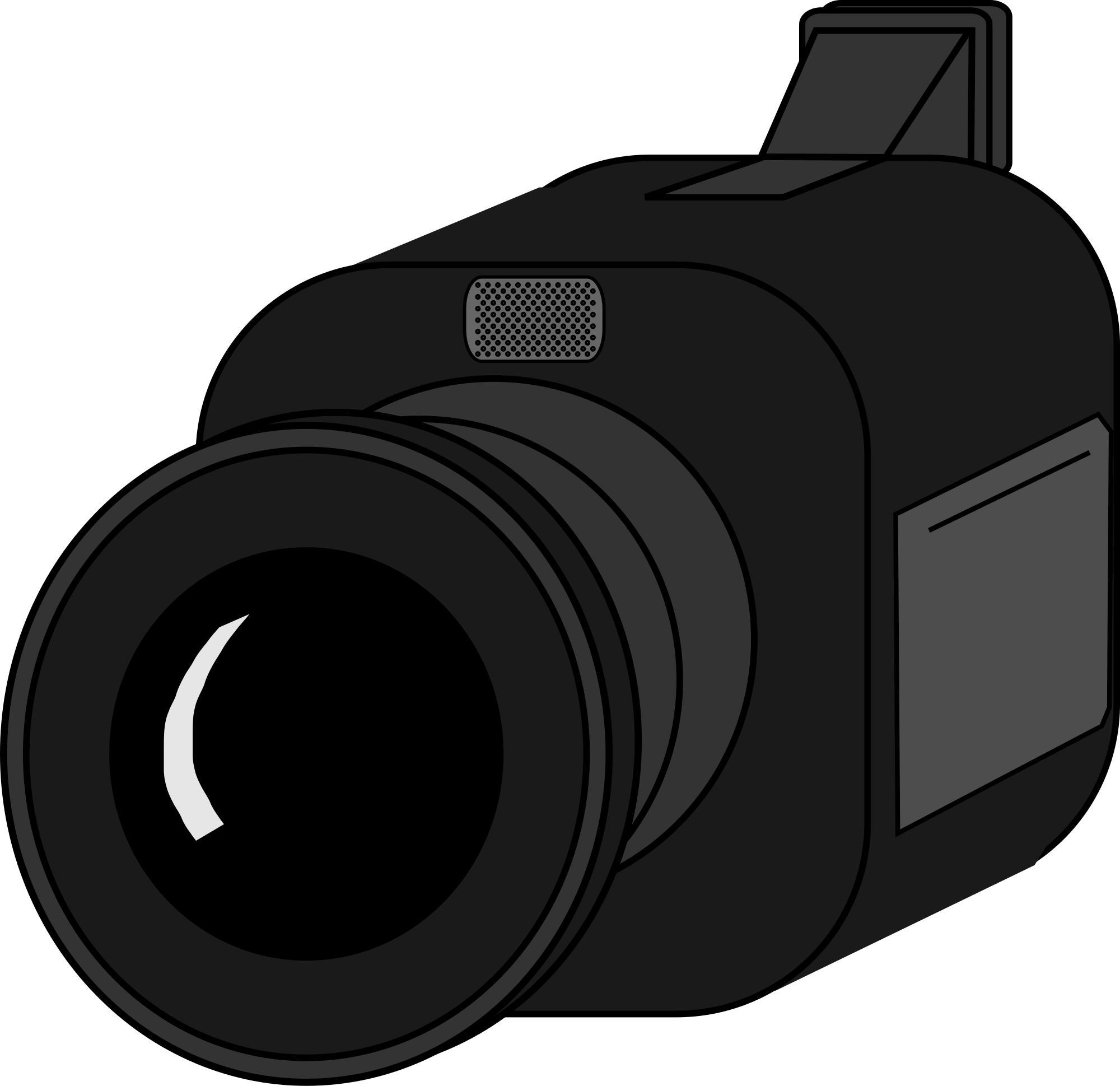 A simple black video camera.