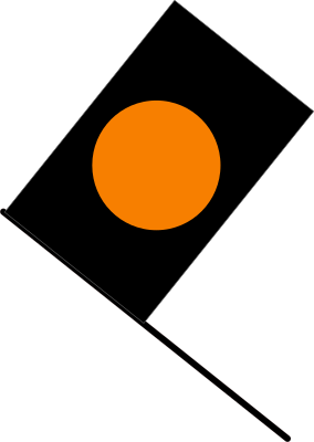The black flag with orange circle, signaling that a car has apparently dangerous mechanical problems and has to stop in the pits (in F1). Drawn in Inkscape.