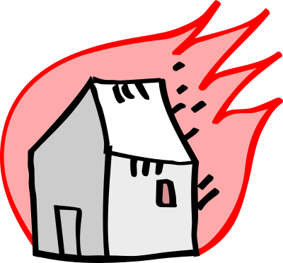 A house burning logo.