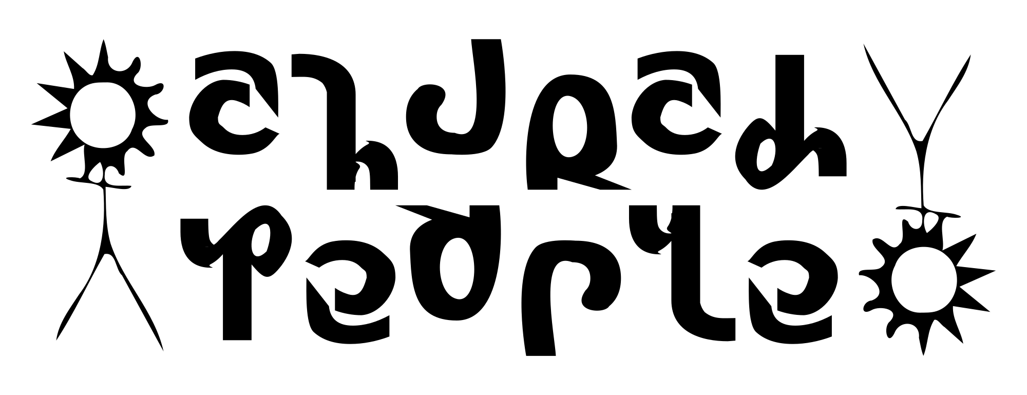 An ambigram of church and people (the perceived word changes when rotated 180 degrees).