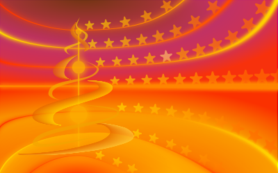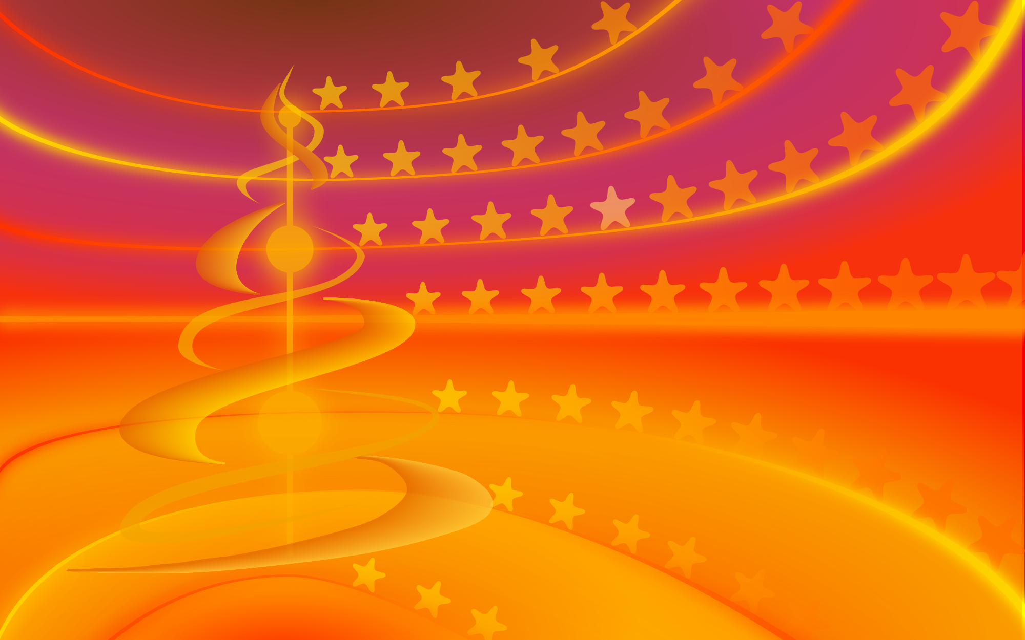 abstract Desktop Wallpaper, Colors red orange yellow. Symbols; Tree, Stars