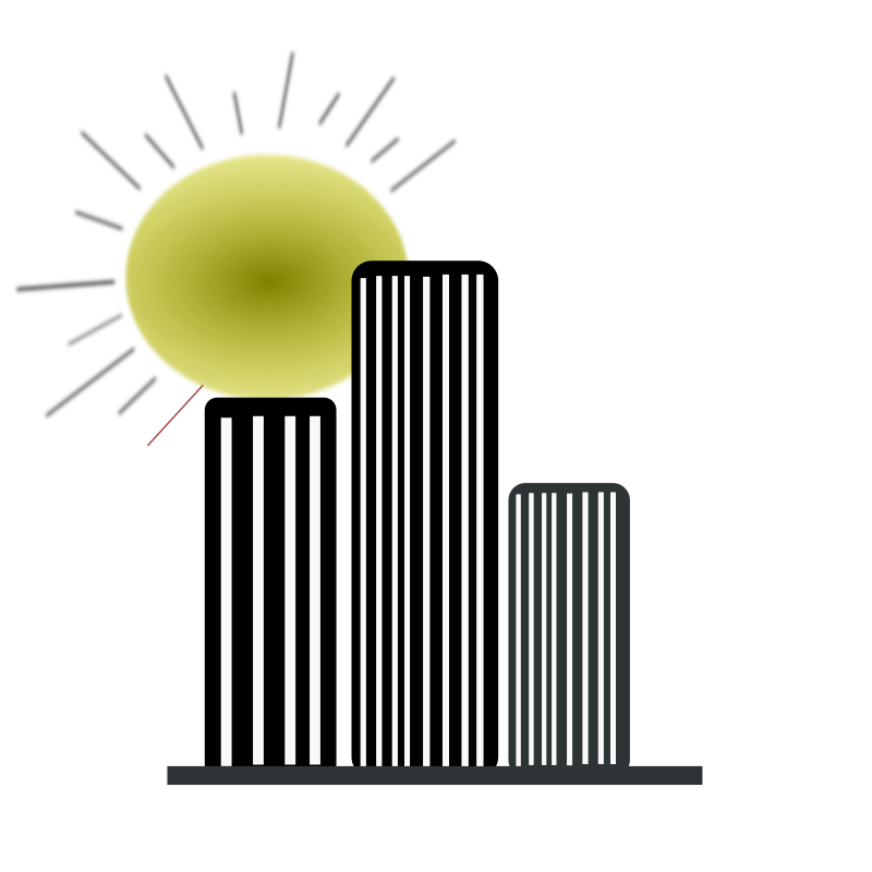 Skyscrappers silhouettes ver the sun.