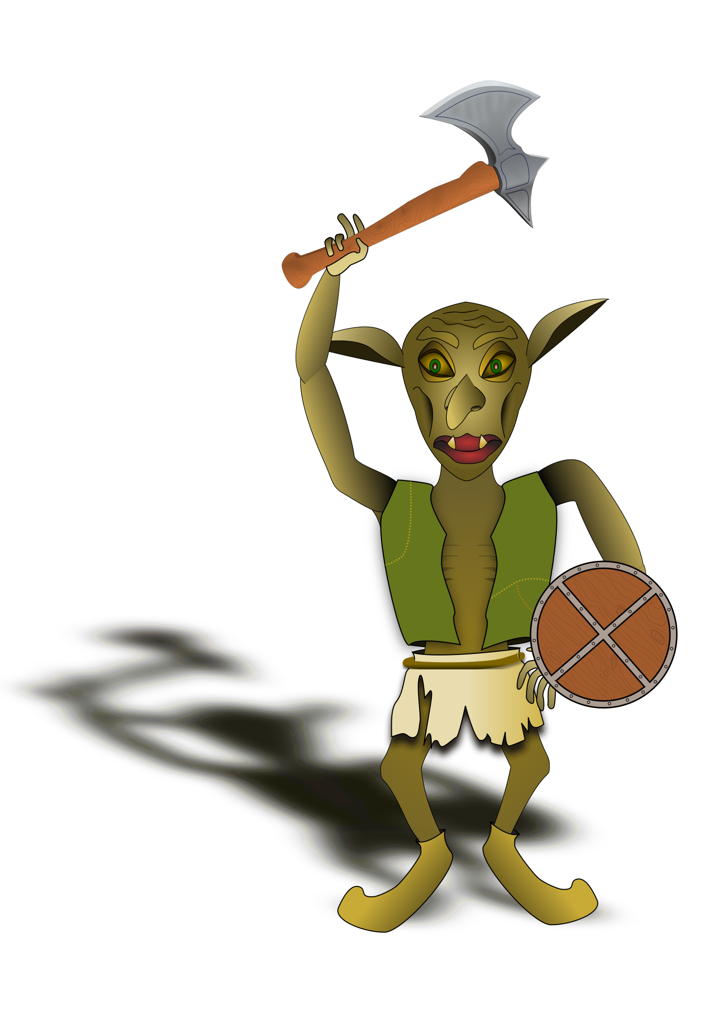 A goblin in tattered clothing wielding an axe and a shield. Uses battle axe and shield graphics from openclipart.org library
