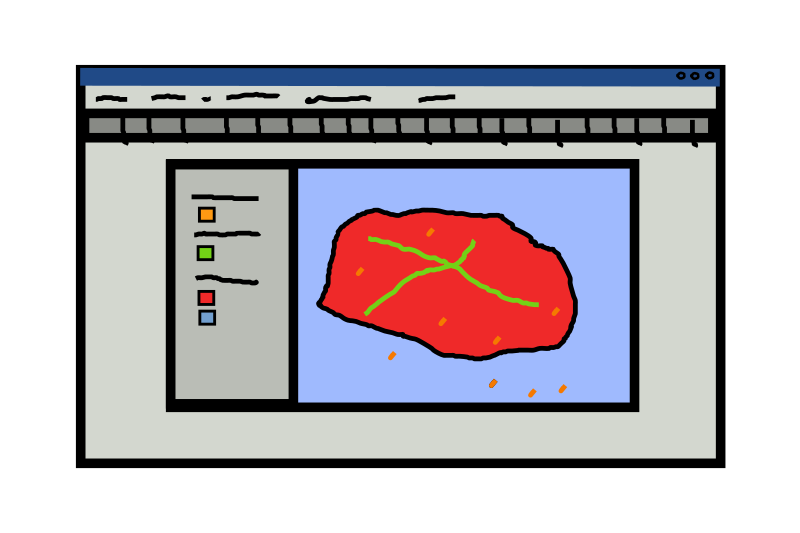 A representation of a typical Geographical Information System Desktop application. This GUI is heavily based on a GISS FOSS project called gvSIG Desktop.