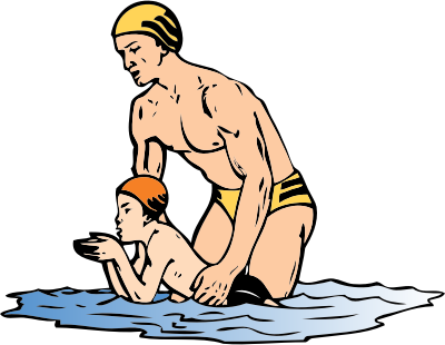 a man giving a boy a swimming lesson from a CDC poster