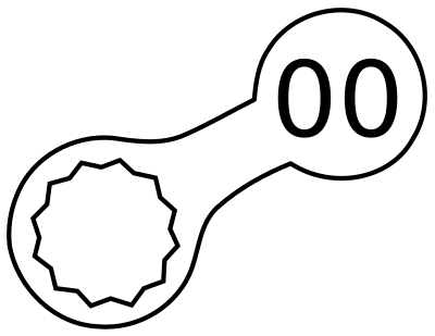 A symbol for service documentation. The number represents the size of the ring spanner needed for the task.
