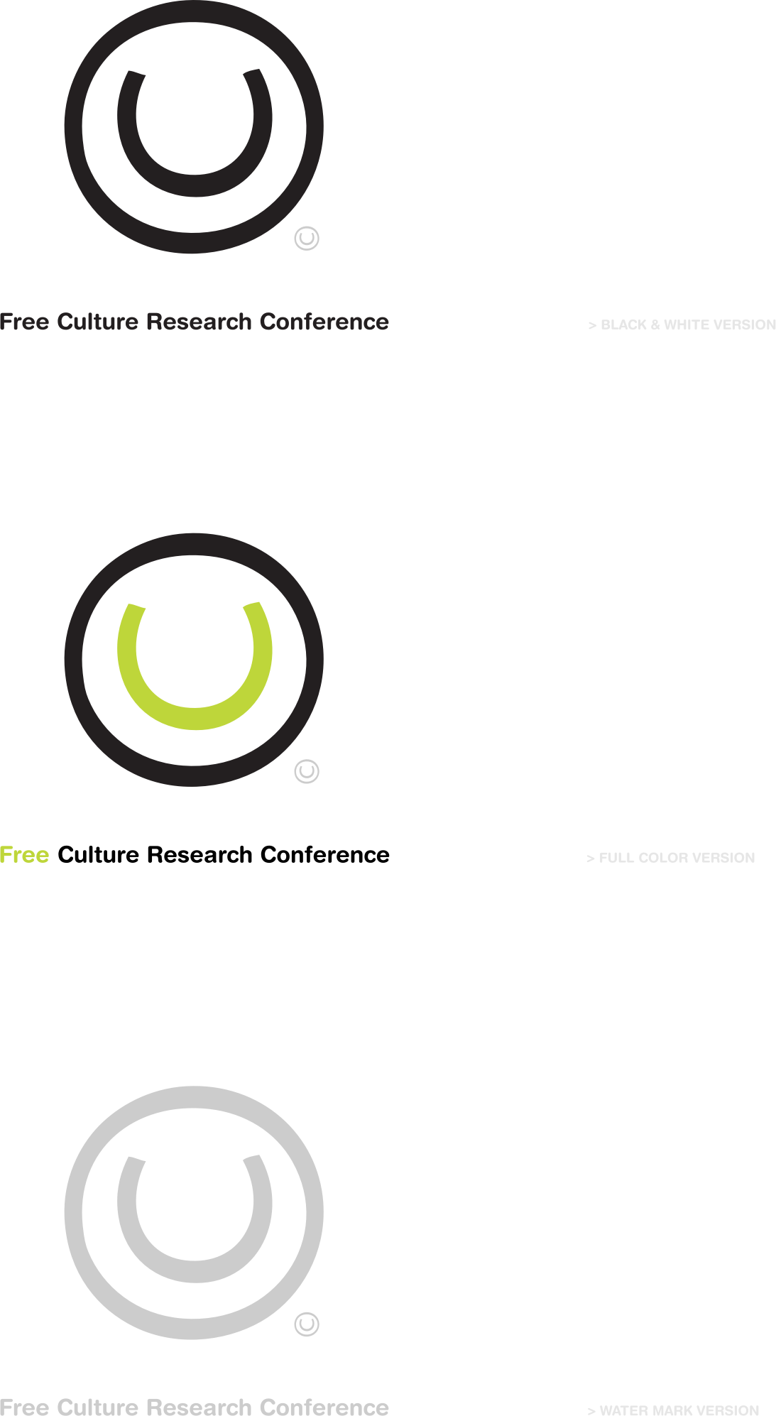 the log is very simple. I just use the Copyright logo, rotated on a 90 d. angle and it looks like a smile face making fun of the original idea of Copyright ©.