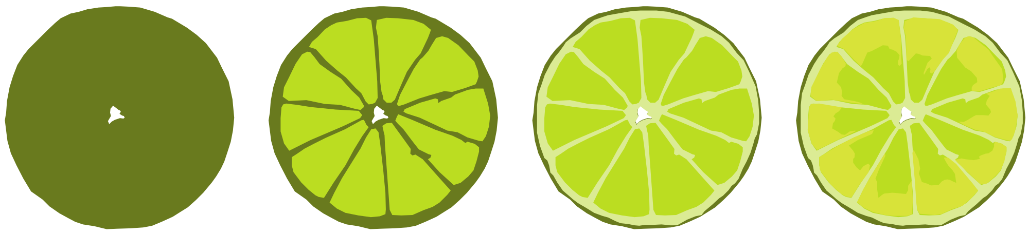 A series of limes, showing the progression of the drawing