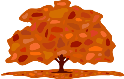 An autumn tree, with leaves on the ground.