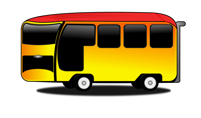 A cartoon bus going to the left.