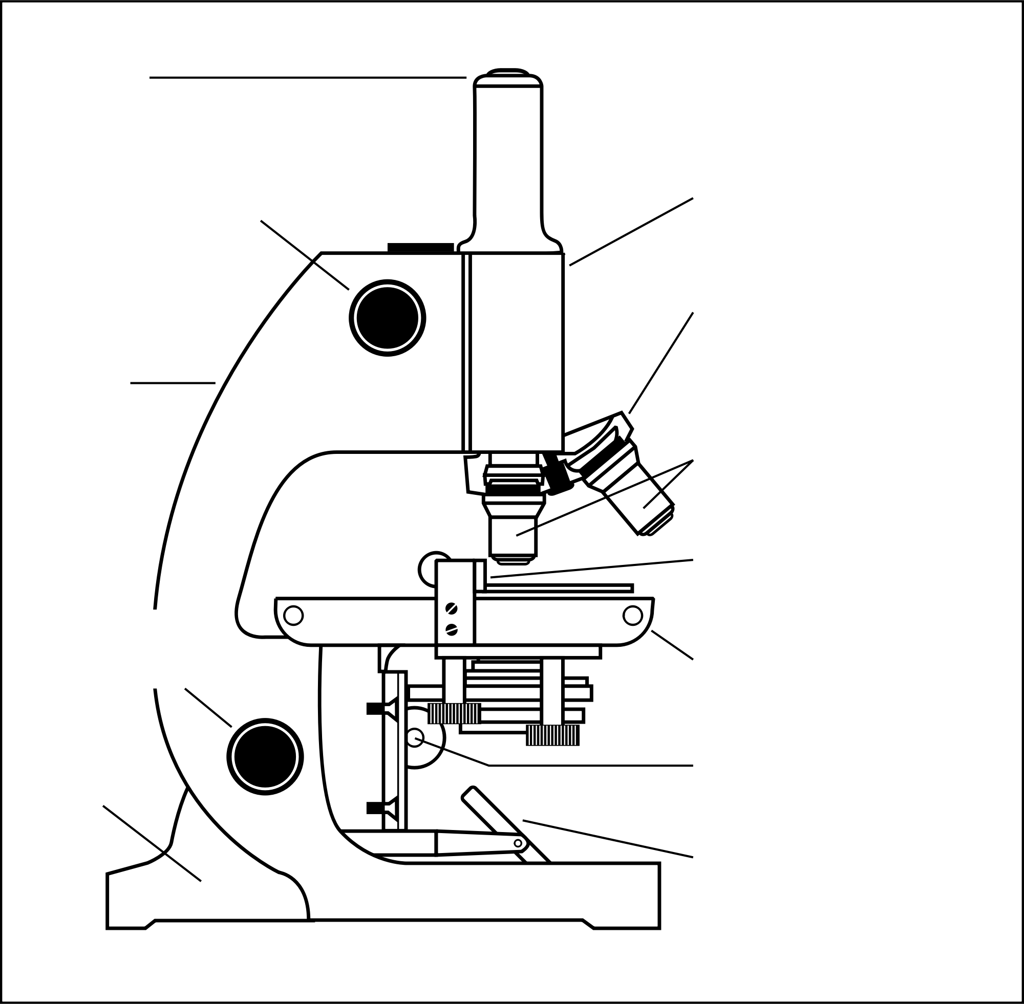 a side view drawing of a microscope with parts labeled. From "The Brain in Space" produced by NASA and stated as PD.