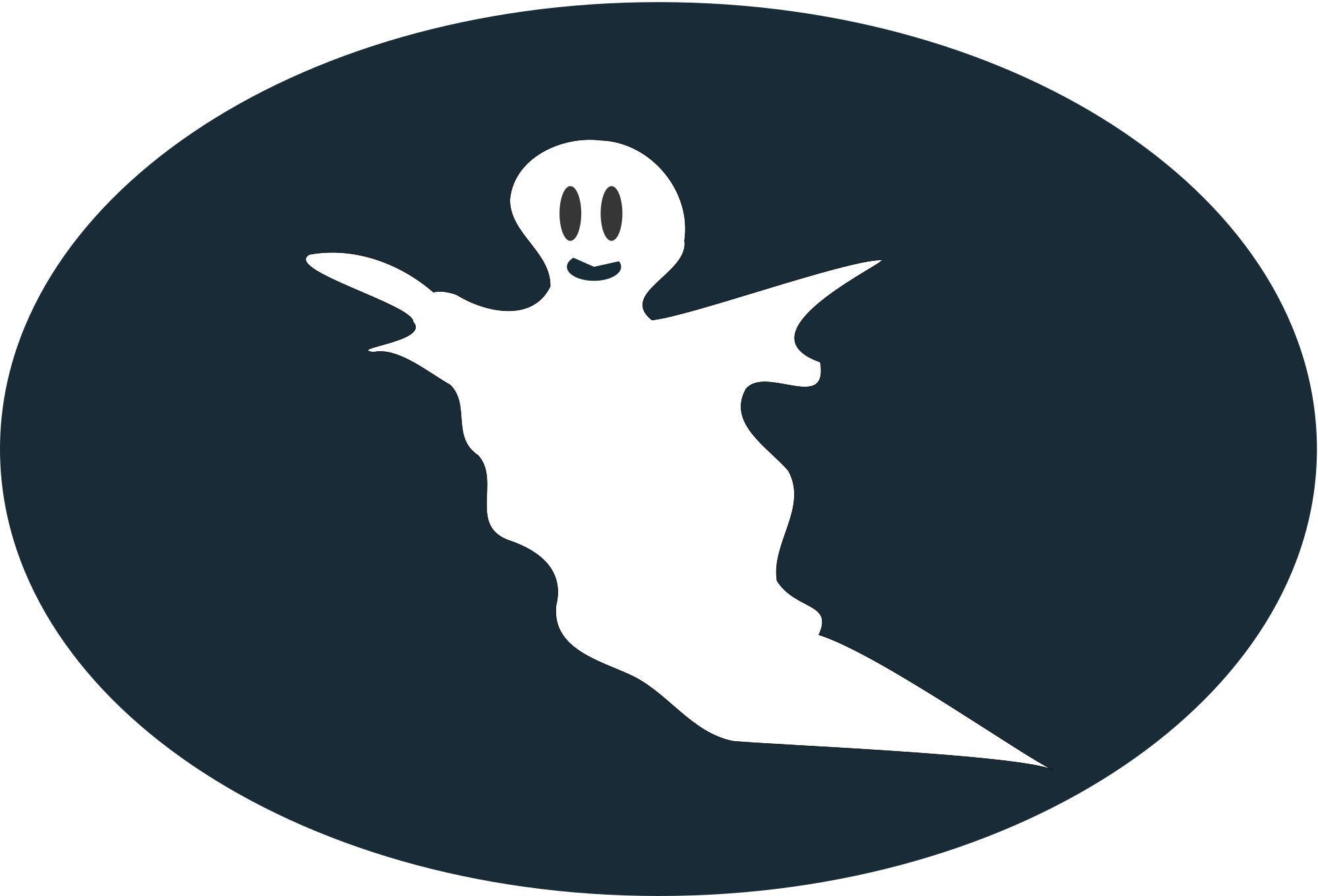A white ghost over an oval shaped background.