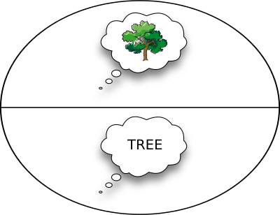 The structure of sign as described by Ferdinand de Saussure in "Course in General Linguistics". I've also used pascallapalme's thought bubble .