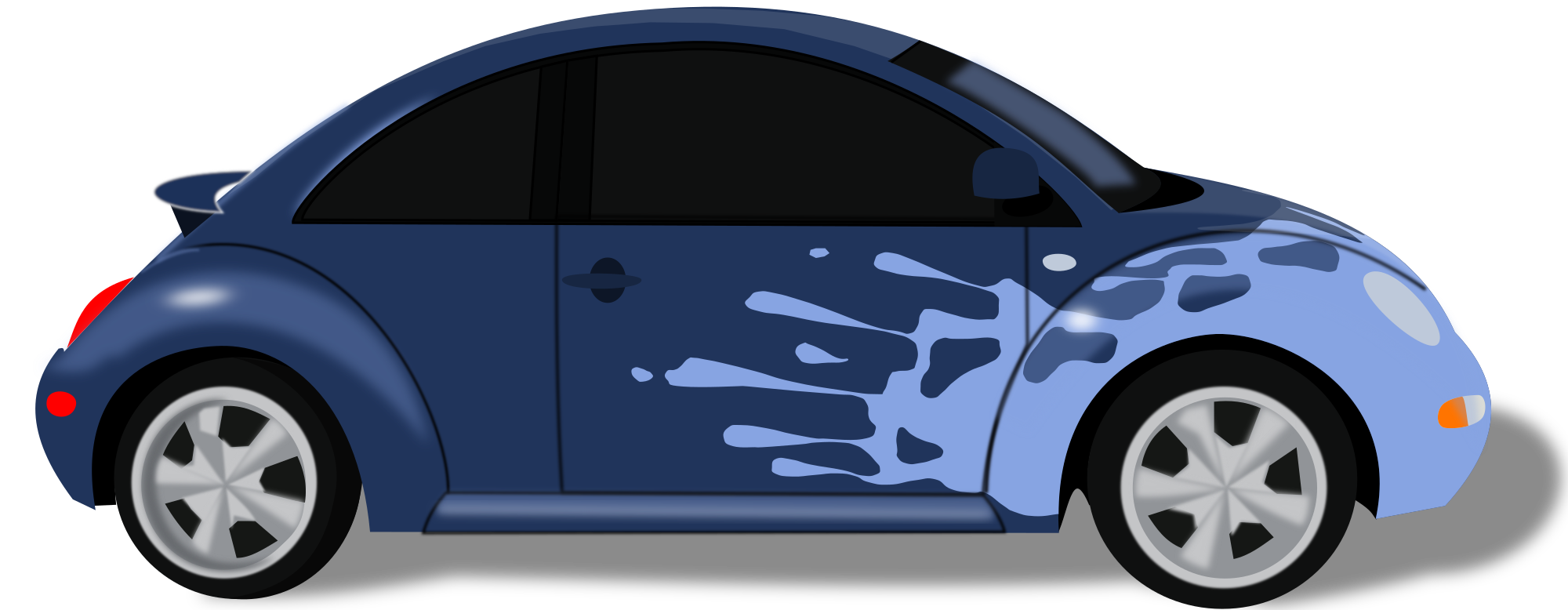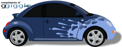 cartoon version of a VW beetle with graphic splash on front. Modeled after the car owned by the author.