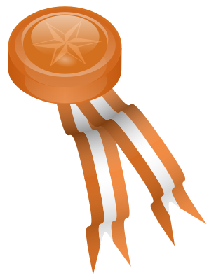 Bronze-toned medallion and ribbon
