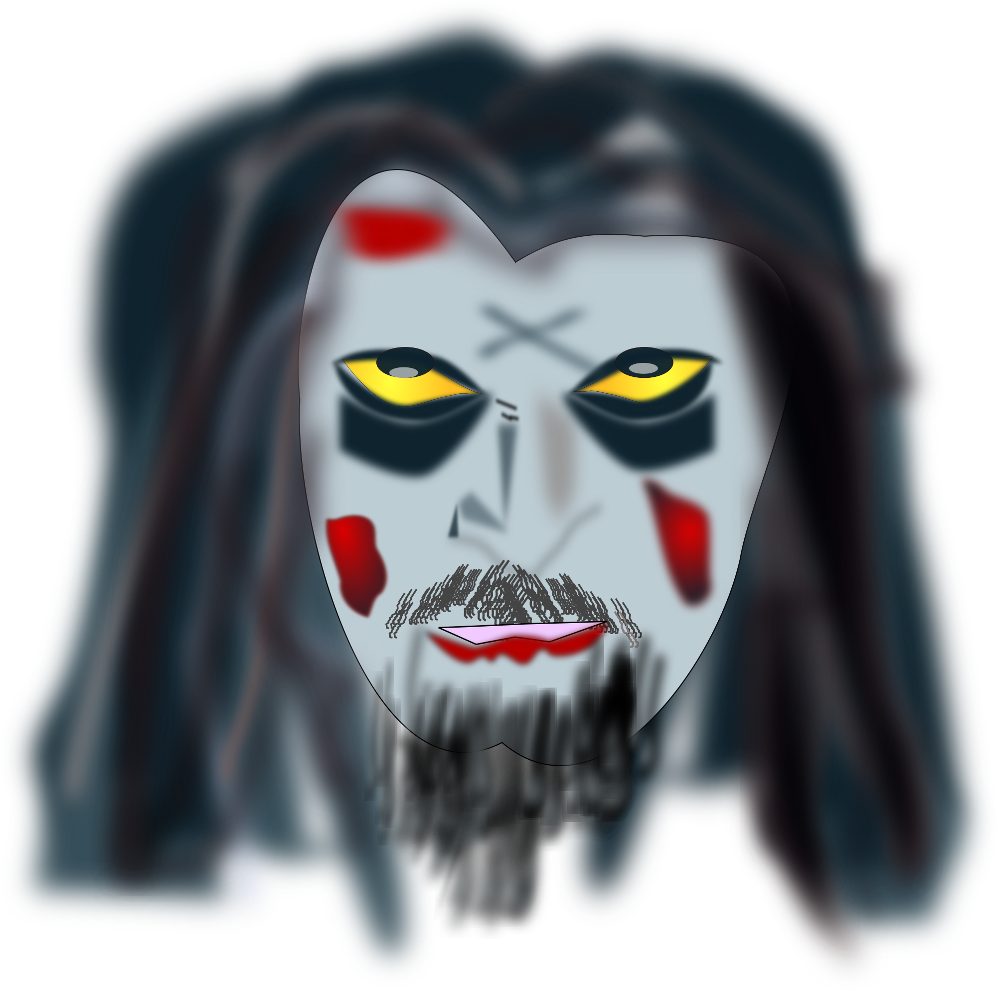 A zombie face with yellow eyes.