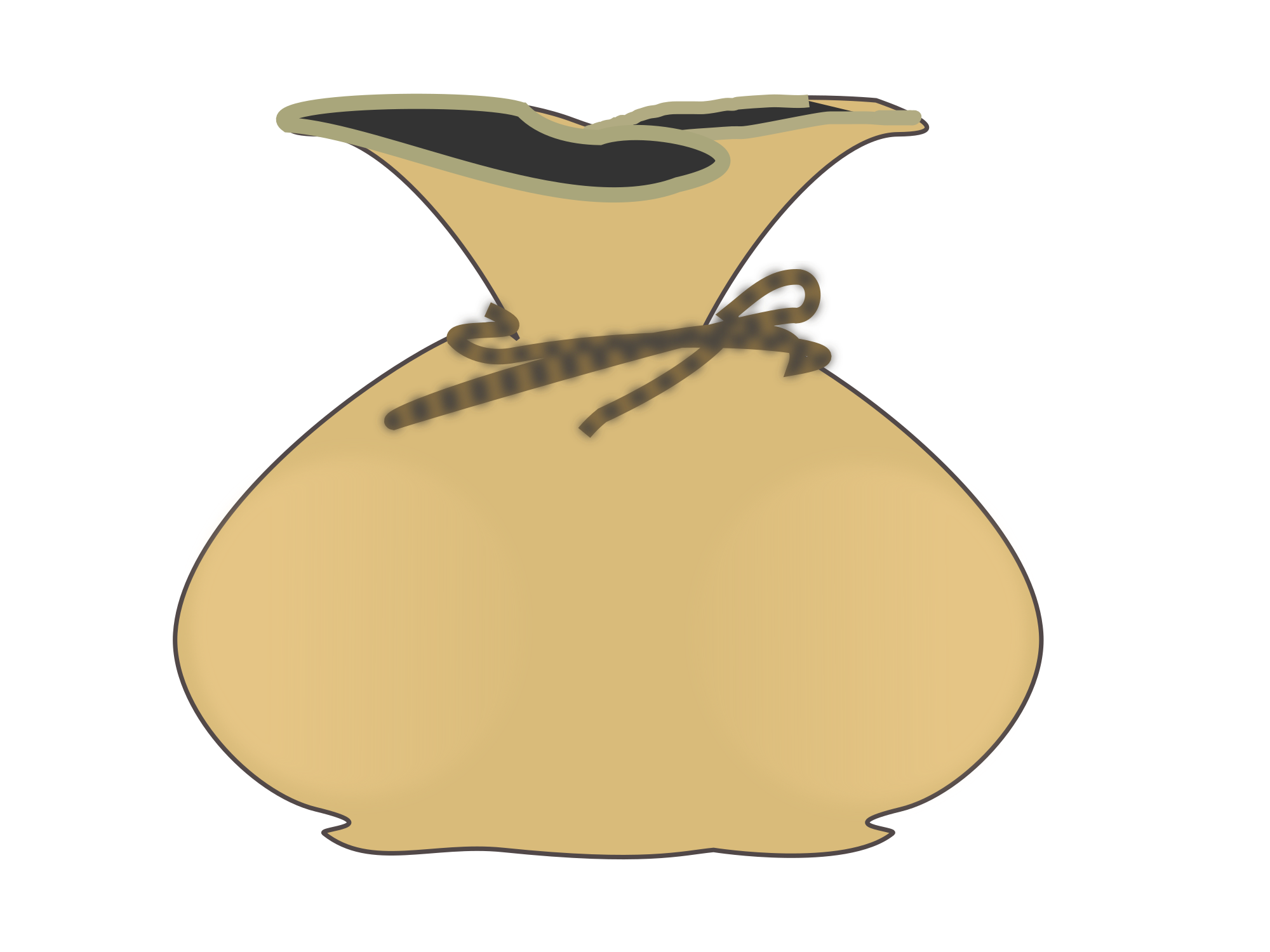 A money bag with a dollar sign tied by a rope.