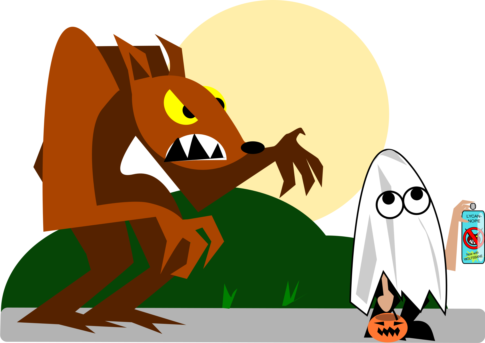 Werewolf vs. trick-or-treater.