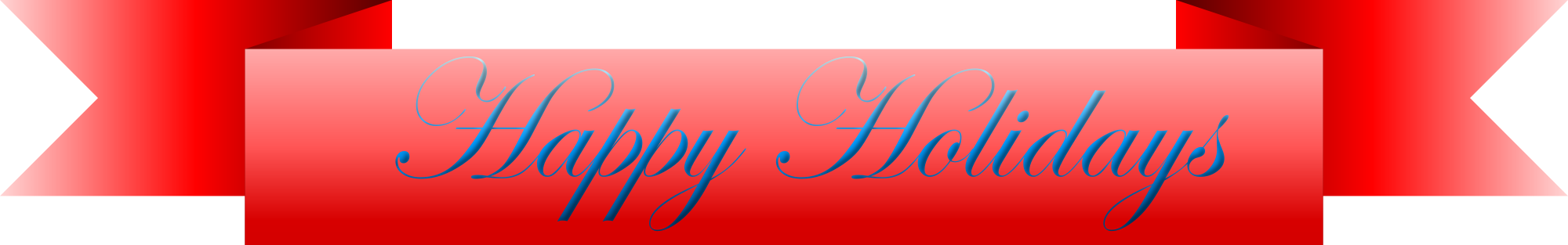 A red ""Happy Holidays"" ribbon for Christmas.