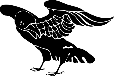a stylized drawing of a black crow