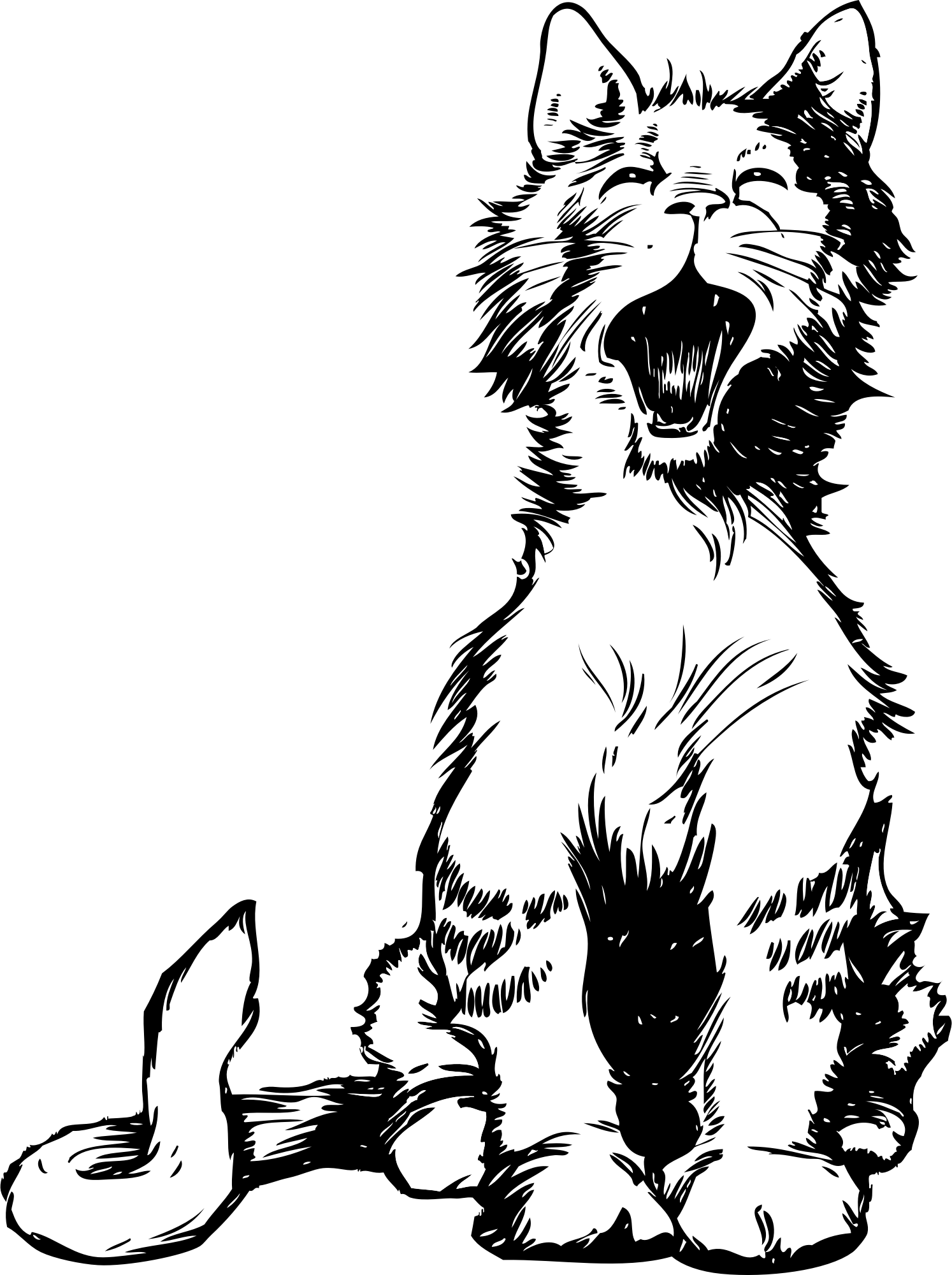 a cute drawing of a cat meowing or crying out