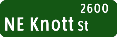 Portland Oregon street name sign: NE Knott St